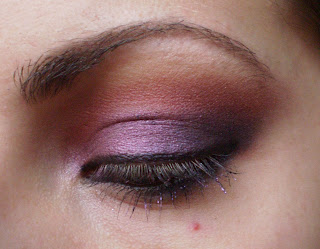 *En esta ocasion he añadido un detalle que espero se pueda apreciar en las fotos (que se me iba la luz por momentos ya...) y es un rimel en color moradito/rosa encima del rimel normal, para dar reflejos.